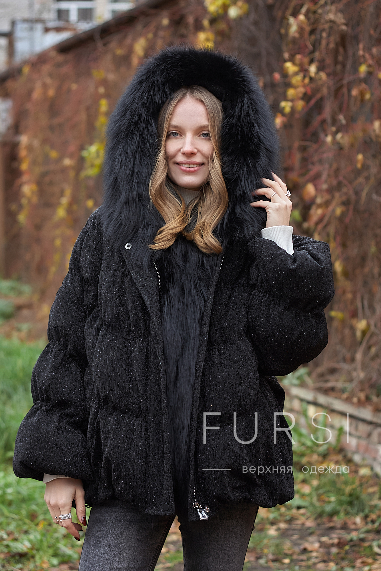 Бомбер оверсайз "Чёрный Оникс" с черной чернобуркой